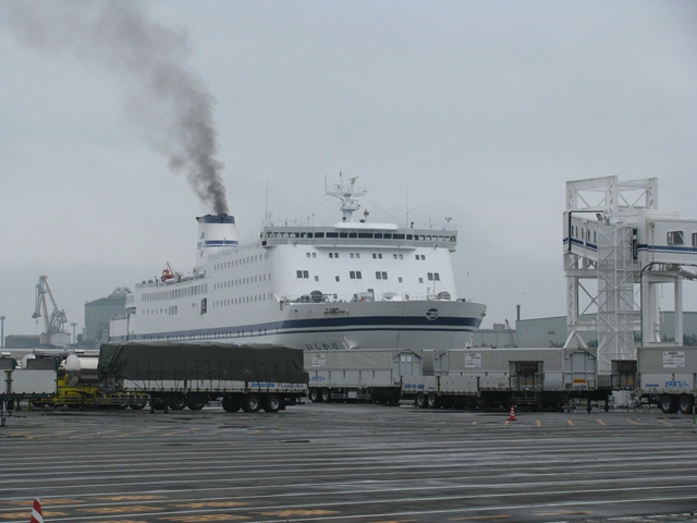 時間を計って外部デッキに出ると、霞の中に太平洋フェリーの「きそ」が見えた。