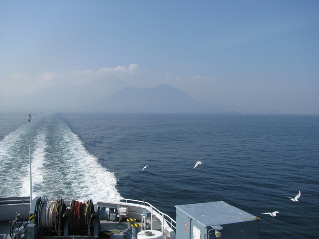 入港まで暇せずにすんだ。しかもそのカモメたちは、入港直前にすれ違ったフェリーに餌を求めて飛び去っていく。
