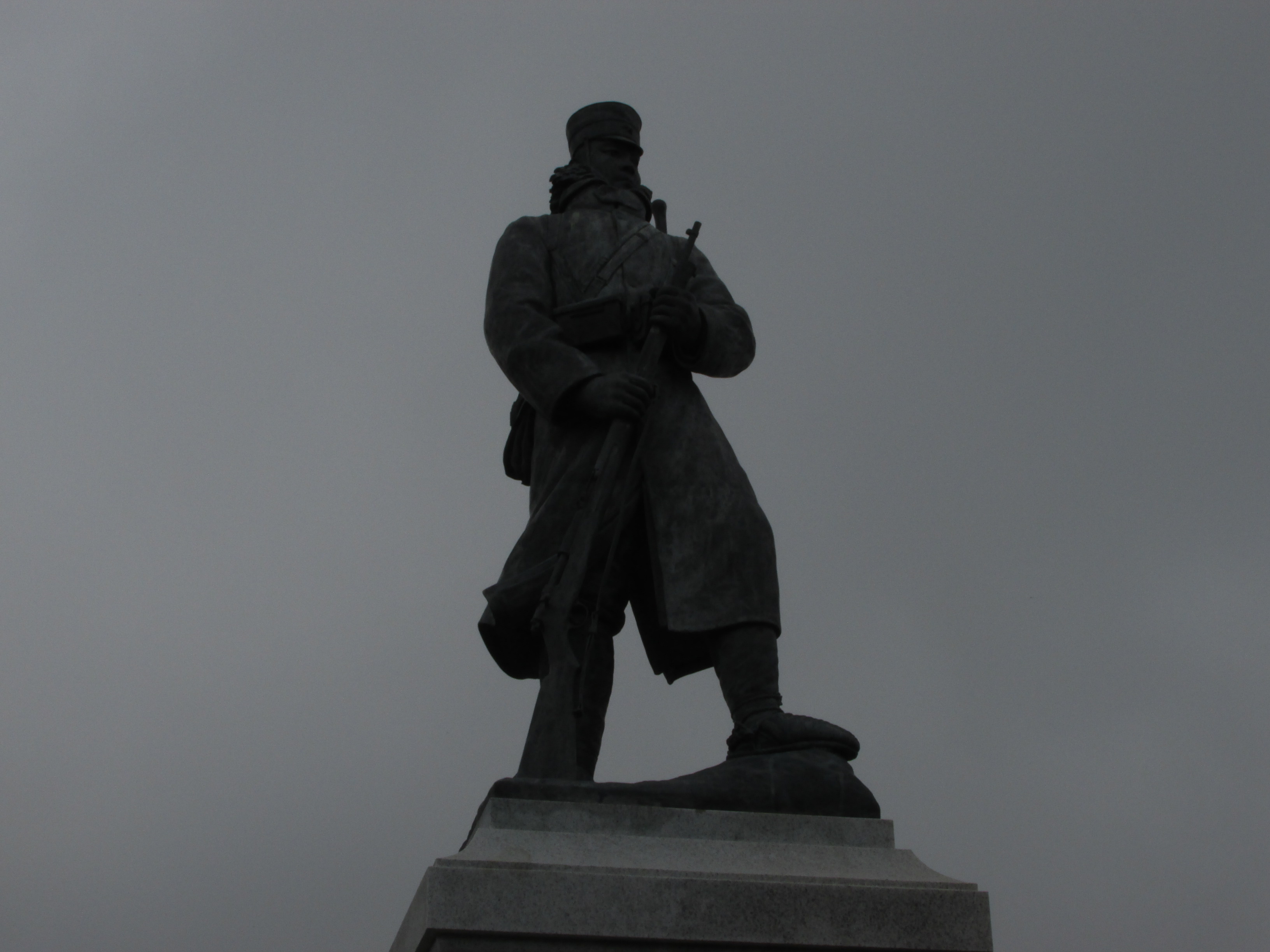 バイクを駐車場に置いて、銅像まで歩く。看板の距離なんか気休めだろう…。そして、到着。