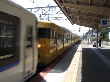 115系か113系か知らんが、懐かしい列車に乗せてもらった。湖西線・東海道本線・阪和線・山陰線でお世話になった車両ですが、窓が昔のまま。噂に聞いた「國鐵廣嶌」か…。