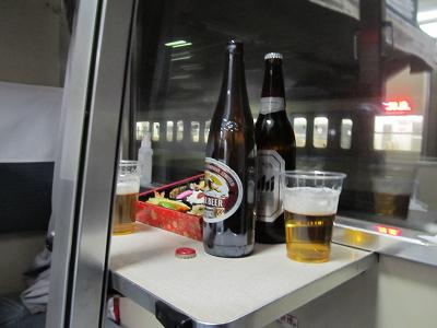 車窓を楽しみカップ酒を飲むと眠くなってきた。眠気覚ましに、寝台特急「日本海」に明日(2/9)、青森駅から乗車する職場の後輩に、今日の寝台特急[日本海]青森駅の延着時間と日本海側の強い風雪を電子メールで伝えた。