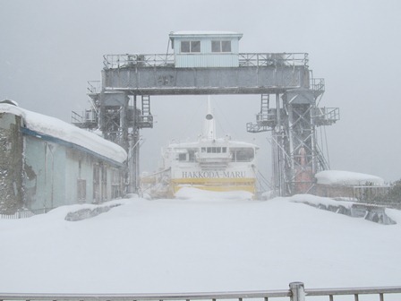折角だから除雪が全くされていない橋を渡り、青函連絡船八甲田丸の写真を撮りに行く。 何度も足が雪に埋もれ、転倒しそうになりながら、前へ前へ歩く。(自分は八甲田山で遭難した陸軍部隊よりは遙かにましだと思ったが、友人は嫌だっただろうなぁ・・・。)