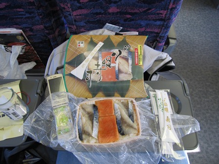 右側は、列車内で食べた駅弁。