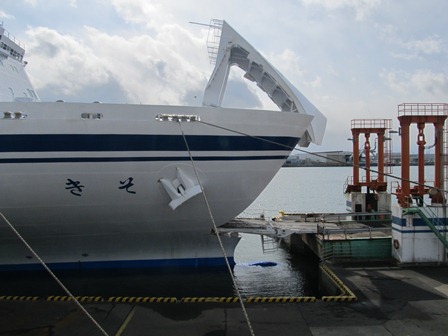 自分が8月下旬、台風12号接近の為に(仙台~名古屋)が運行中止になったフェリーだ。あの強行帰還(820km)を思い出してしまった。 今回こそ、太平洋フェリー「きそ」を十分に堪能しよう。
