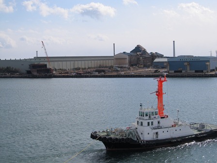 船が仙台港を出る。