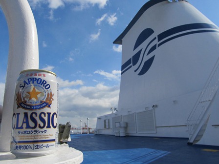 その後、デジタルオーディオプレーヤーを聞きながら、寒い外部甲板で街の灯りや灯台の光をビール片手に楽しむ。