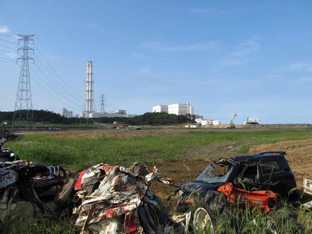 原型も留めない自動車達と火力発電所