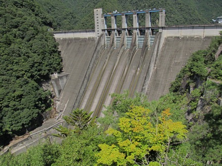 気になる対岸の集落を眺め、照明の無いトンネルの幾つかを抜けて、やっと佐久間ダムに到着。