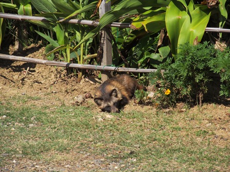 狸が足下で寝てる。道端でも寝てる。