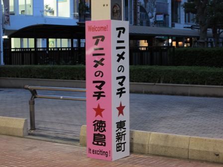 「アニメの街★徳島」の看板があった。アニメ系の店があったので、萌え系好きな友人達向けの土産を見ようと店に入ったが無かった。