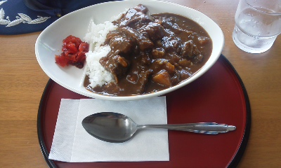 腹が減っていたので土産屋内に併設してある、「食堂むてき」で天敵(鹿肉)カレーを遅い時間に昼飯として頂く。