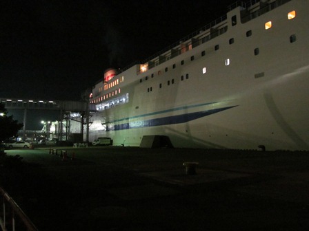 また外部デッキに行き、入港の様子を見てから部屋に戻ると、下船案内の放送があり荷物を抱えて、相棒(バイク)の停まっている車両甲板へ行く。