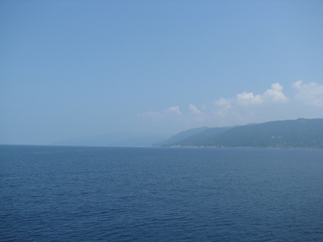 出港すると左に原発半島、右に越前海岸。 ボケーと右舷側(越前海岸)の海岸を缶ビール片手に眺める。
