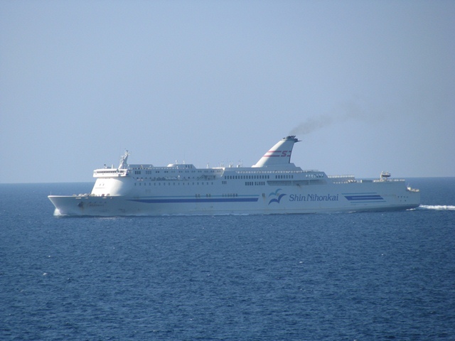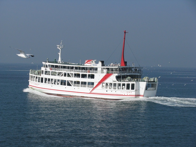 のんびりとその光景を眺める。 入港まで暇せずにすんだ。しかもそのカモメたちは、入港直前にすれ違ったフェリーに餌を求めて飛び去っていく。(しっかり者のカモメ達だが、そのねぐらは何処にあるのだろうか?)